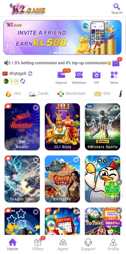 The K2 Game is an online casino, cards, slots, lottery, and sports betting app made for users in Pakistan.