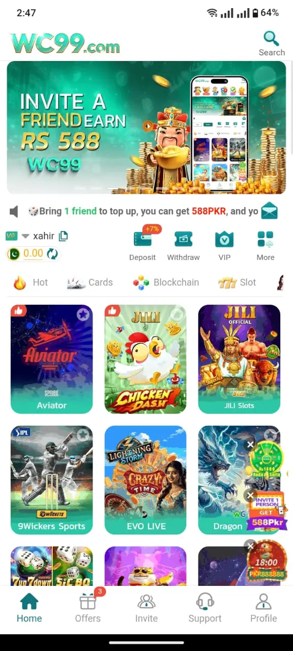 The Wc99 App is an online earning platform where users can play different games and win real rewards. It is designed for people who want both fun and income in one app. Players can enjoy slot machines, card games, lucky spins, and other entertaining challenges.